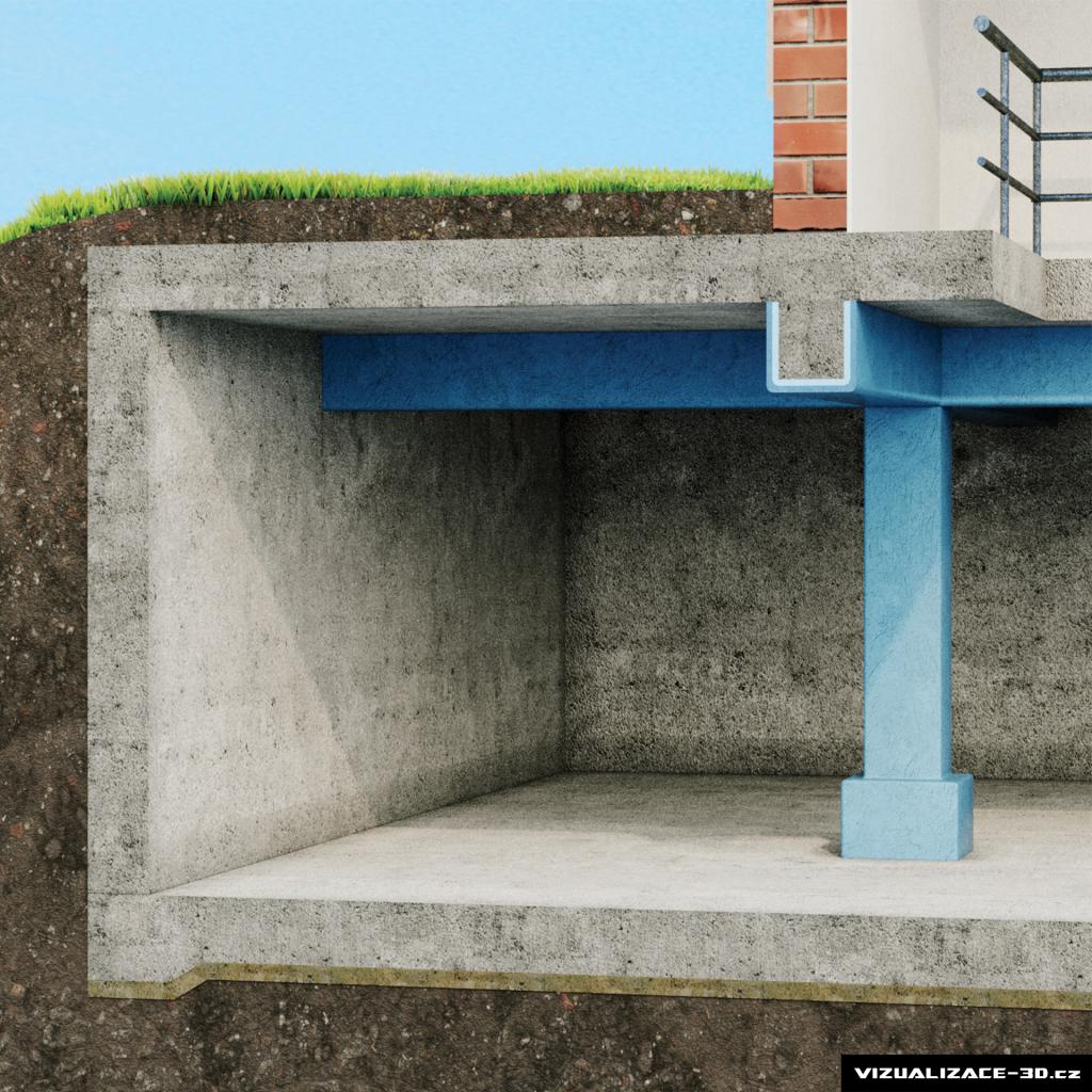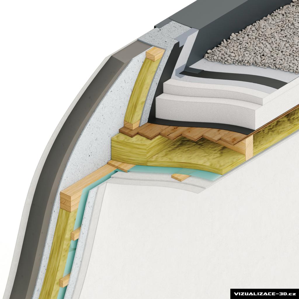 Vizualizace stavebních konstrukcí, stavební detaily, řez konstrukcí, vizualizace, nákres